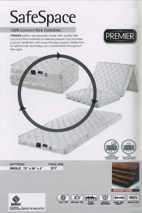 1) Safe Space 100% Coconut Fibre Foldable Mattress (75” x 36” x 4”). Promotional price at RM 480.00