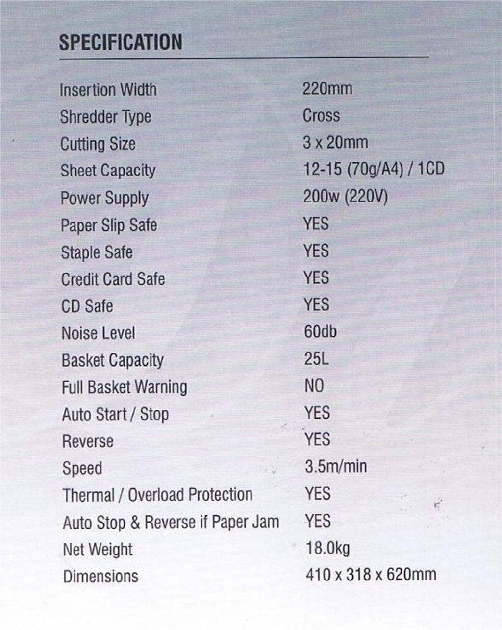 Shredder Type :Cross