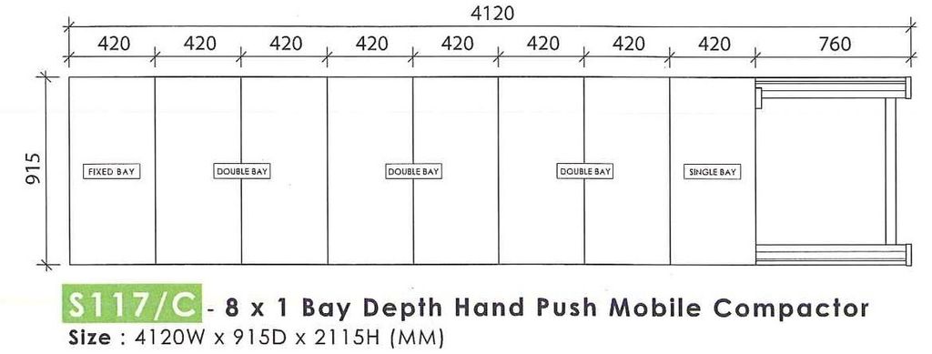 8 x 1 Bay Depth Hand Push Mobile Compactor Model: O-S117/C